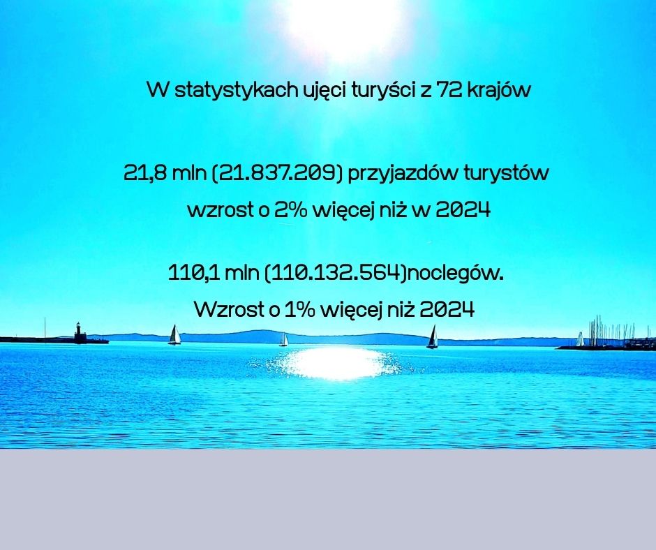 110,1 mln (110.132.564)  noclegów. Nad samym Adriatykiem 104,6 mln. Wzrost o 1% więcej niż 2024